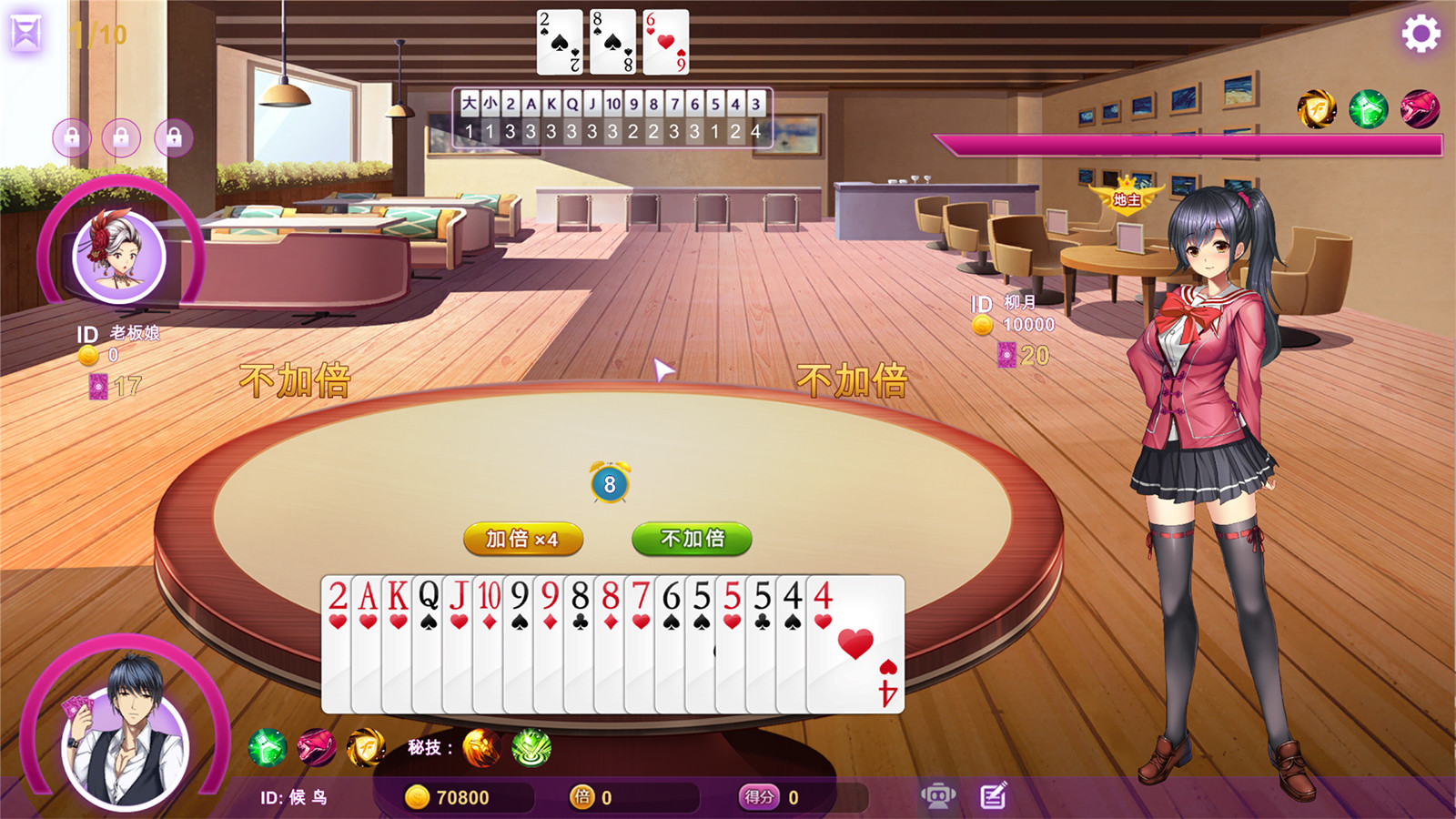 4、尝试玩玩破解版的斗地主游戏,游戏里面有提示换牌看牌看别人的的功能 其实我觉得首先要牌品好,牌品好了人品就好,牌品好了牌就好其实玩游戏就是娱乐娱乐,不要太介意输赢重要的是自己的心态祝打牌越来越好~~很;书 xhyh2com 1首先登录途游斗地主游戏,进入残局302关里2其次开局先手出对Q,对方会拆掉三个2出对2,这时直接用四个A压死,拿到牌权3最后先手出对K,对方这里只能直接出四个10,让出牌权,接着对方会先手出2,直接用大王压死,锁定胜局,出掉手里的3即可通关成功建议。