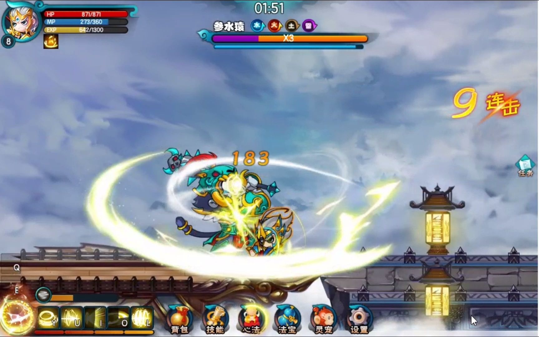 8、在造梦西游5中,使用木灵葫芦捕捉灵宠的方法如下购买木灵葫芦打开造梦西游游戏界面,前往游戏商店在商店中花费灵魂购买木灵葫芦设置快捷键点击游戏界面中的“按键设置”选项在弹出的界面中,使用鼠标将木灵葫芦拖动到右下角的道具栏中设置好使用木灵葫芦的快捷键进入游戏关卡进入游戏中。
