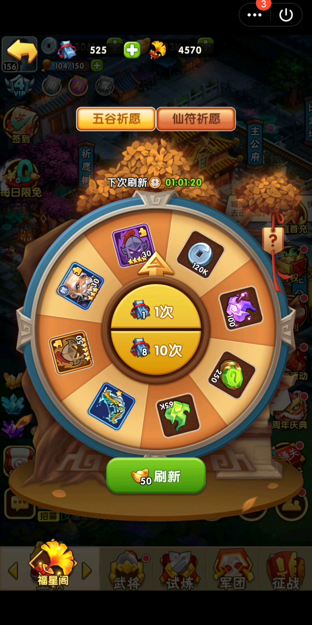 2内政考核任务需要完成一定数量的星级任务,建议所有任务都使用元宝进行刷新,出现4星以上任务再开始,消耗的资源对应获得道。