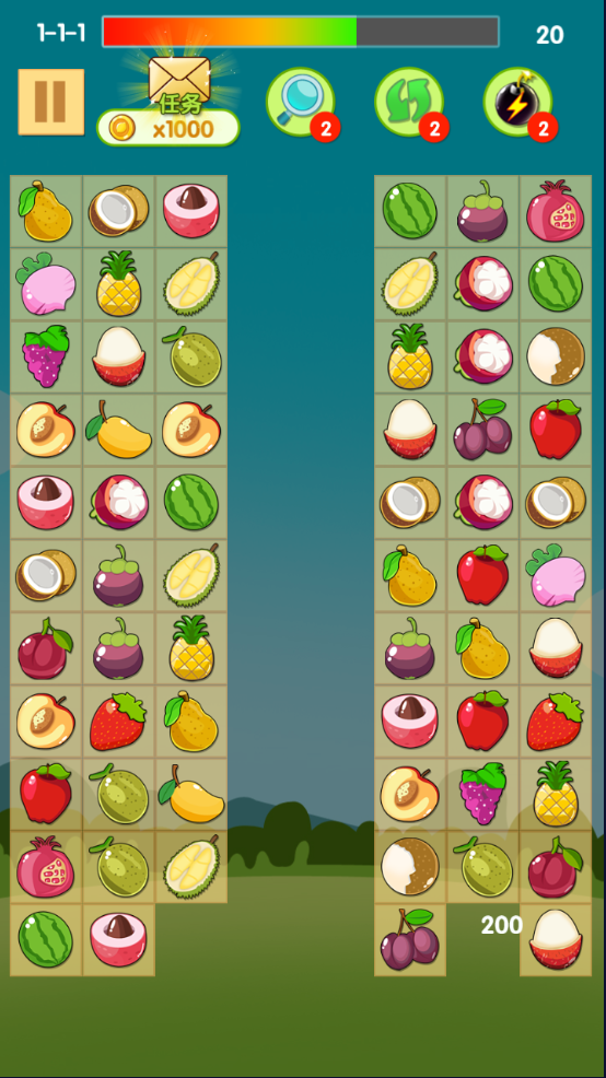 游戏名称水果连连看2大小49 MB开发Zhigang Qi运行环境与 iPad 兼容需要 iOS 32 或更高版本操作指南点击两个图标,如果这两个图标图案相同,并且两个图案之间能形成一个不多于两个折点的没有其他图案阻隔通道相连,即可以消除这两个图标。