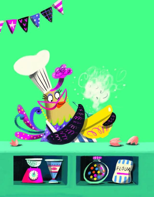 “Tomorrow is the cake contest,” Alberta clucked to the other chickens. “First prize is a blue ribbon! What should I bake?”