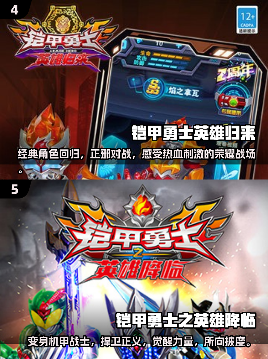铠甲勇士炎龙破解版是一款深受玩家喜爱的手机游戏您可以通过腾讯电脑管家的应用宝下载这款游戏首先,打开腾讯电脑管家,点击工具箱选项,接着进入应用宝页面在应用宝内输入铠甲勇士炎龙破解版进行搜索,您将会找到相应的下载链接最后,将手机连接至电脑,选择安装,即可将游戏安装到您的手机中腾讯;勇士集结,铠甲变身,超炫酷华丽技能轻松释放,场景多变,冒险升级,战斗力爆棚,超强打击快感,非常之刺激,欢迎感兴趣的朋友下载试玩九游铠甲勇士4之捕将手游特色丰富养成元素一个好的动作手游除了核心战斗体验以外,还需要好的养成要素,这样才能保证游戏的可玩性和耐玩性而捕将也恰恰拥有这点游戏中;游戏官方网站下载如果在应用商店中找不到这款游戏,玩家可以尝试访问游戏的官方网站在搜索引擎中输入“铠甲勇士之英雄降临官方网站”,找到相关结果后点击进入在官方网站上找到游戏的下载链接,点击链接后按照提示进行下载和安装注意事项 确保下载来源的可靠性尽量从官方或知名的应用商店和网站下载;检查手机内存在下载和安装前,确保手机有足够的内存空间,以保证游戏的流畅运行查看游戏版本下载时,注意查看游戏的版本信息,确保下载的是最新版本,以获得最佳的游戏体验遇到问题及时反馈如果在下载或安装过程中遇到问题,可尝试重新下载或联系平台的客服寻求帮助综上所述,手机游戏铠甲勇士刑天BT。