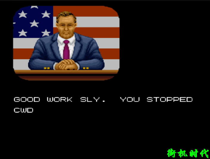 通关之后,总统亲自对主角进行表彰。我们要是仔细看的话,这家伙的神情似乎和现任的总统非常神似?难道这款游戏的开发商,还有预知未来的能力?