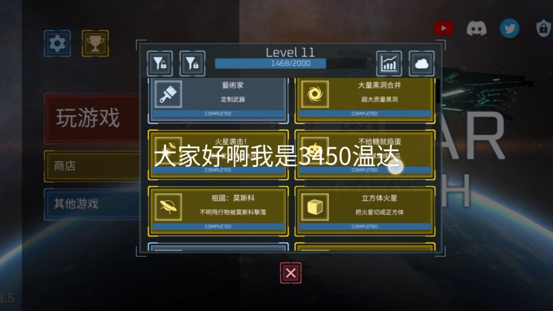 11、在星球毁灭模拟器游戏中,解锁海洋行星需要将等级升级到三级具体解锁步骤如下进入游戏并升级首先,你需要进入游戏界面为了解锁海洋行星,你需要通过不断的毁灭星球来提升自己的经验值画面上方黄色的数值表示星球的完整度,当完整度低于20%时,你就可以完成破坏挑战,并获得经验值随着经验值的积累。